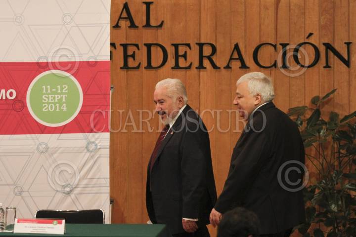 MÉXICO, D.F., 11SEPTIEMBRE2014.- José Alejandro Luna Ramos, presidente del Tribunal Electoral del Poder Judicial de la Federación y Emilio Chuayffet Chemor, secretario de Educación Pública, durante la inauguración del seminario "El ejercicio de los derechos de la niñez como componente de una formación ciudadana", realizado en el Tribunal Federal Electoral. FOTO: ADOLFO VLADIMIR /CUARTOSCURO.COM
