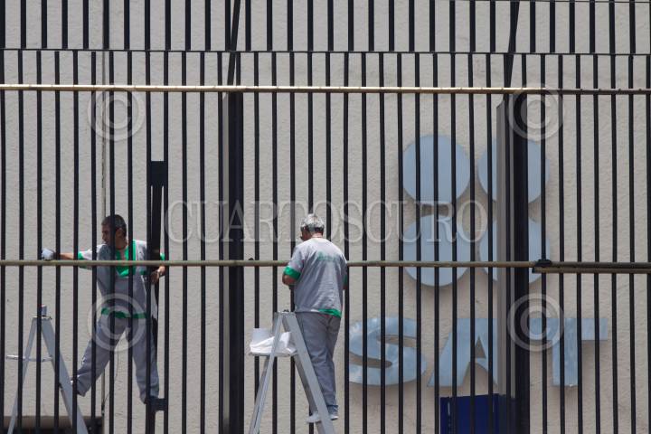 MÉXICO, D.F., 26JULIO2011.- Personal de limpieza le da su trapazó a las rejas de la oficina del Servicio de Administración Tributaria, ubicadas en avenida Hidalgo. FOTO: MOISÉS PABLO/CUARTOSCURO.COM