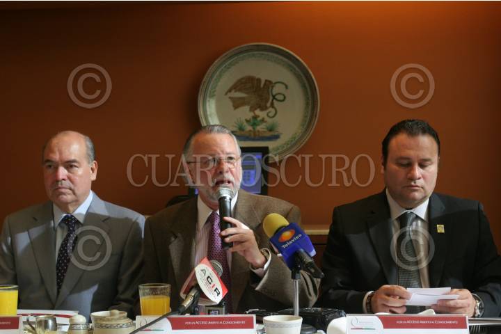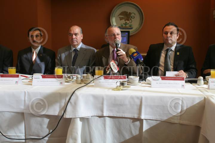 MÉXICO, D.F., 23FEBRERO2011.- Arnoldo Ochoa González, José Trinidad Padilla López, presidente de la Comisión de Educación Pública y Servicios Educativos de la Cámara de Diputados y Arquímedes Oramas Vargas, anunciaron la conformación del Movimiento Nacional Tecnológico Universitario, adherente al Partido Revolucionario Institucional. FOTO: MOISÉS PABLO/CUARTOSCURO.COM