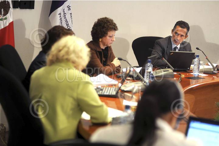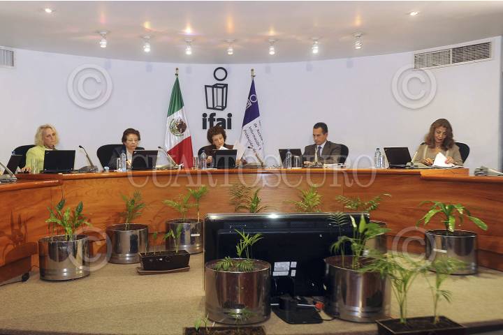 MÉXICO, D.F., 31AGOSTO2011.- Sigrid Arzt, María Marban, Jacqueline Peschard, Ángel Trinidad Zaldivar y María Elena Pérez-Jaén comisionados del IFAI durante la sesión pública del pleno donde se instruyo a la Secretaria de Hacienda y Crédito Público a poner a disposición la información sobre el total de ingresos obtenidos del 1 de diciembre de 2006 al 15 de mayo de 2011, por concepto de aumentos a precios de gasolinas Magna, Premium y Diesel. FOTO: IFAI/CUARTOSCURO.COM