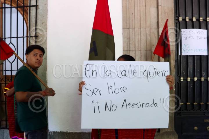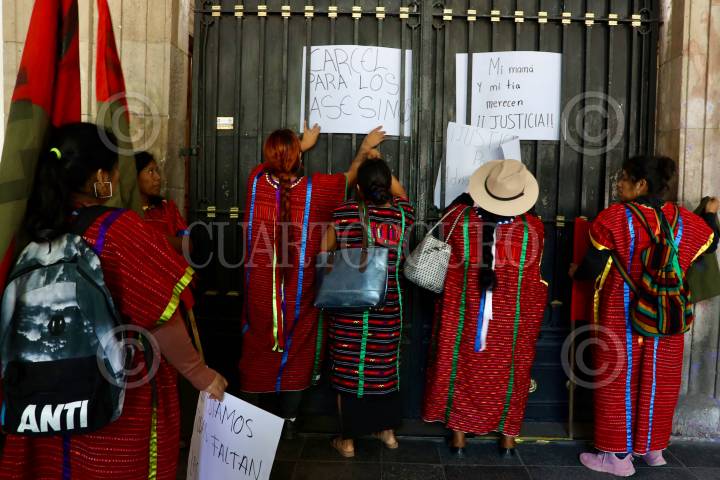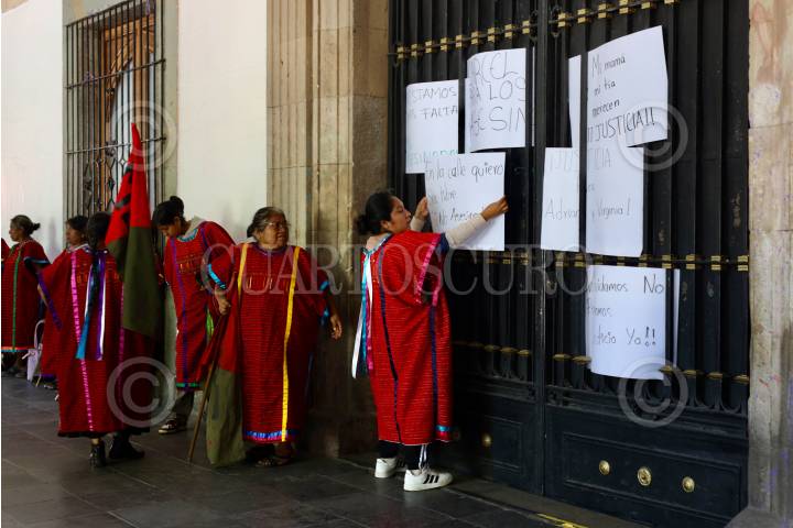 OAXACA, OAXACA, 06NOVIEMBRE2024.- Integrantes del Movimiento de Unificación y Lucha Triqui (MULT) demandaron justicia y agilizar las investigaciones por el doble feminicidio de Virginia y Adriana Ortiz García ocurrido la noche del 5 de noviembre en la colonia Unión de la capital de Oaxaca. Los manifestantes denunciaron que desde el inicio de la administración del morenista, Salomón Jara Cruz, 33 integrantes del MULT han sido asesinados. FOTO: CAROLINA JIMÉNEZ/CUARTOSCURO.COM