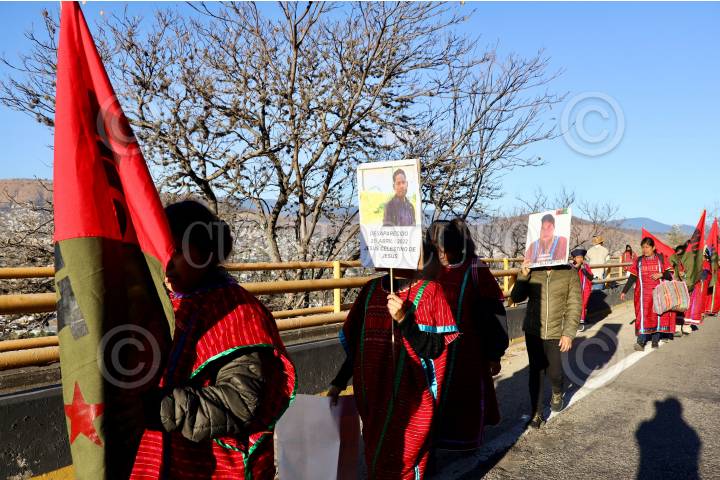OAXACA DE JUÁREZ, OAXACA, 02FEBRERO2025.- Cientos de militantes del Movimiento de Unificación y Lucha Triqui marcharon a la capital de Oaxaca para exigir justicia por los 17 asesinatos de militantes que se han registrado durante el gobierno del morenista Salomón Jara Cruz. Los manifestantes pidieron a las autoridades realizar las investigaciones correspondientes y restablecer la paz en la zona triqui. FOTO: CAROLINA JIMÉNEZ /CUARTOSCURO.COM