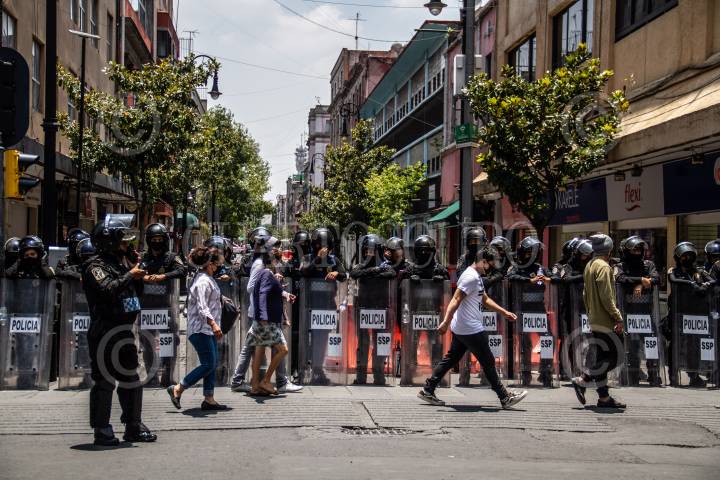 Elementos de seguridad bloquearon algunas de las calles del Centro Histórico para evitar que manifestantes provocaran daños a negocios