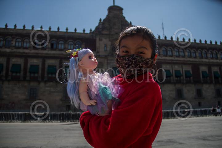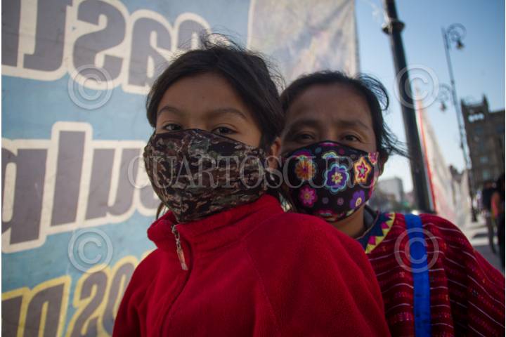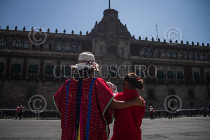 Barbara es un niña de origen triqui, desde hace al menos tres meses vive desplazada de su hogar en Tierra Blanca, Oaxaca. Por ahora junto con su familia mantiene plantón frente al Palacio Nacional en busca de que sean atendidos por Andrés Manuel López