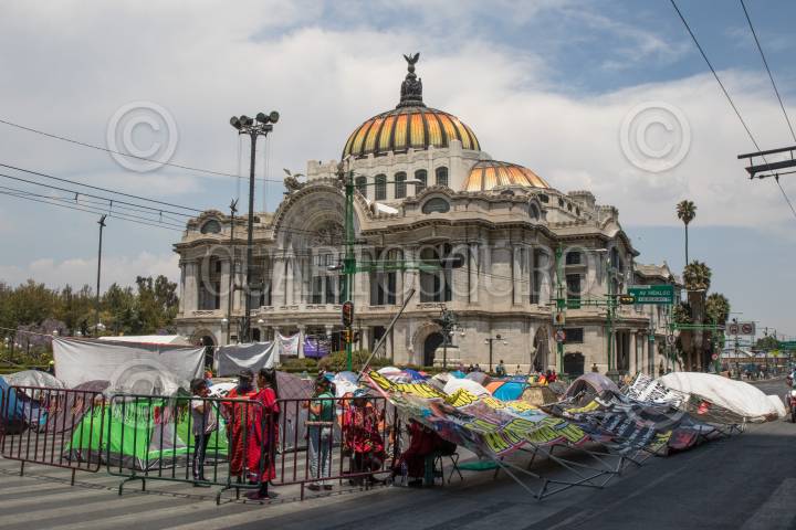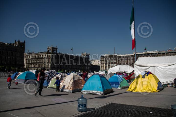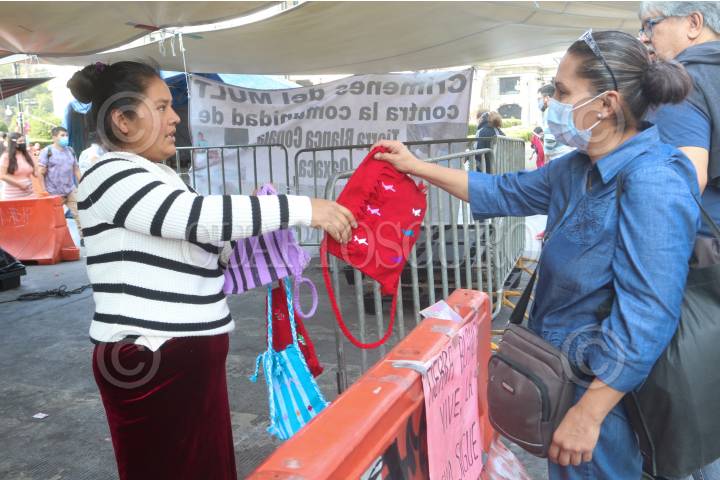 Obidia es una de las mujeres desplazadas de Tierra Blanca, Oaxaca. Ella viajo con sus 6 hijos y esposo para apoyar en el plantón que primero se mantenía frente a Bellas Artes y a inicios de marzo se trasladaron a la Plancha del Zócalo frente a Palacio