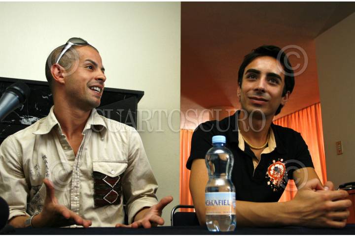 SAN LUIS POTOSÍ, SLP.- Los integrantes del Ballet Trockadero de Monte Carlo, que parodian obras clásicas de ballet ofrecieron una conferencia de prensa previo a su presentación hoy en la noche en el marco del Festival Internacional de Danza Lila López. Los bailarines Camilo Rodríguez de Puerto Rico y Roberto Lara de México durante la conferencia. FOTO: PAOLA HIDALGO/CUARTOSCURO.COM