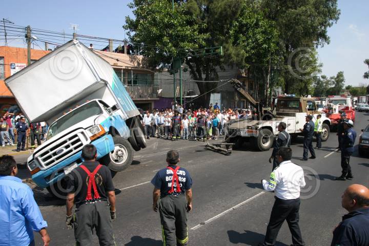 MÉXICO, D.F., 26MAYO2009.- Una camioneta de carga volcó sobre el eje 3 Oriente, Troncoso y la calle de Recreo en la delegación Iztacalco. FOTO: SAÚL LÓPEZ/CUARTOSCURO.COM