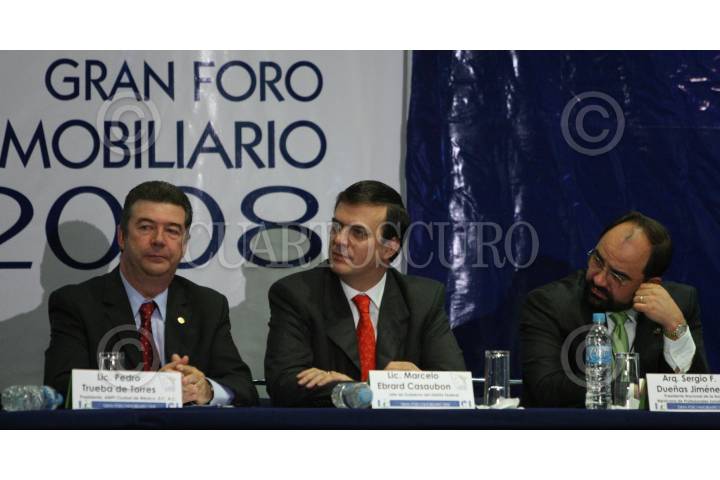 MÉXICO, D.F., 01OCTUBRE2008.- Marcelo Ebrad Casaubon, Jefe de Gobierno del DF, inaguró el "Gran Foro Inmobiliario 2008", que se lleva a cabo en el Centro Banamex. En la imágen junto con el director de la AMPI; Pedro Trueba de Torres y el presidente de la Asociación Mexicana de Profesionales Inmobiliarios; Sergio Dueñas Jiménez. FOTO: JESUS MARTÍNEZ/CUARTOSCURO.COM