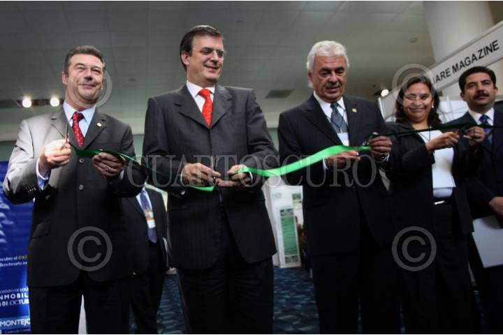 MÉXICO, D.F., 01OCTUBRE2008.- Marcelo Ebrad Casaubon, Jefe de Gobierno del DF, inaguró el "Gran Foro Inmobiliario 2008", que se lleva a cabo en el Centro Banamex. En la imágen junto con el director de la AMPI; Pedro Trueba de Torres, durante el corte del liston y el director del foro; Alejandro Kuri Pheres. FOTO: JESUS MARTÍNEZ/CUARTOSCURO.COM