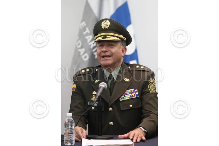 MÉXICO, D.F.,08OCTUBRE2010.- Oscar Naranjo Trujillo, director general Policia Nacional de Colombia y secretario ejecutivo de Ameripol durante una conferencia de prensa sobre la tercera reunión anual de las policías de América (Ameripol) que se desarrollará en las instalaciones de la Secretaría de Seguridad Pública federal. FOTO: RODOLFO ANGULO/CUARTOSCURO.COM