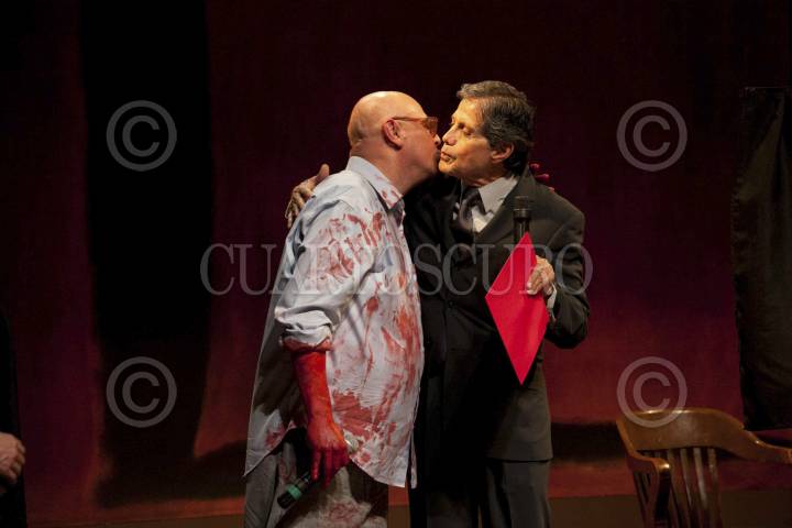 MÉXICO, D.F., 28ENERO2012.- El día de ayer el actor Víctor Trujillo, develó la placa de 100 representaciones de la obra "Rojo". En la ceremonia fue felicitado por el actor Héctor Bonilla. La cita fue en el Teatro Helénico. FOTO: IVÁN MENDEZ/CUARTOSCURO.COM