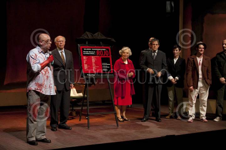 MÉXICO, D.F., 28ENERO2012.- El día de ayer el actor Víctor Trujillo, develó la placa de 100 representaciones de la obra "Rojo", a la ceremonia asistieron el rector de la UNAM José Narro Robles, la escritora Elena Poniatowska, y Héctor Bonilla. La cita fue en el Teatro Helénico. FOTO: IVÁN MENDEZ/CUARTOSCURO.COM