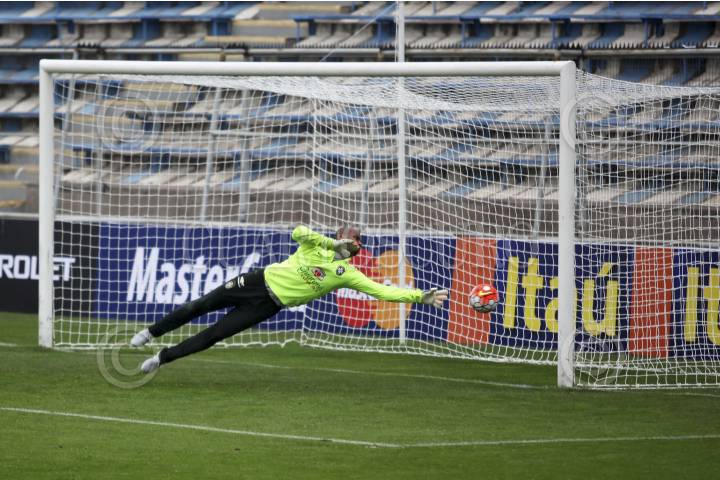 SANTIAGO, CHILE., 06OCTUBRE2015.- La selección brasileña se preparó en el estadio San Carlos de Apoquindo previo a su encuentro de clasificaciónpara Rusia 2018, que sostendrá contra la selección nacional de Chile el próximo jueves. El cuerpo técnico y jugadores sostuvieron un encuentro con la Cruz Roja chilena y con los damnificados del pasado terremoto y tsunami que dañó la Región de Coquimbo. La verdeamarela y sus estrellas ofrecieron sus camisetas en apoyo a la población afectada. En la imagen el portero Jefferson. FOTO: FÉLIX MÁRQUEZ /CUARTOSCURO.COM