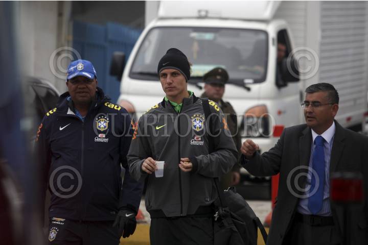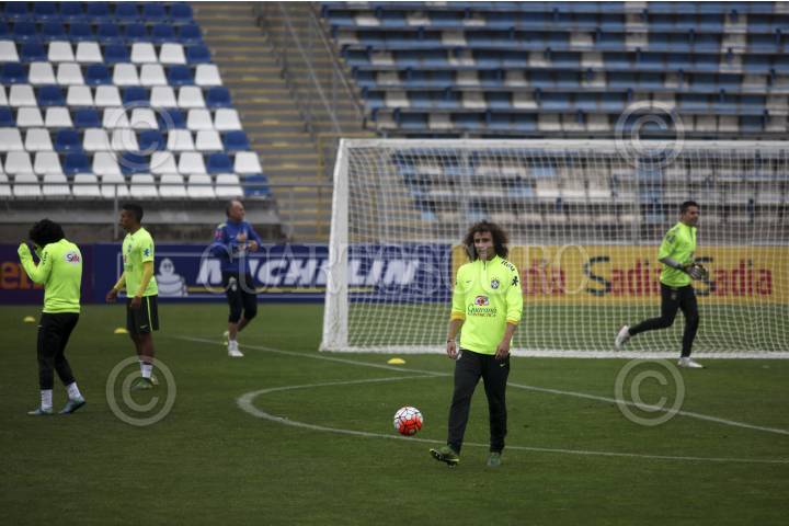SANTIAGO, CHILE., 06OCTUBRE2015.- La selección brasileña se preparó en el estadio San Carlos de Apoquindo previo a su encuentro de clasificación para Rusia 2018, que sostendrá contra la selección nacional de Chile el próximo jueves. El cuerpo técnico y jugadores sostuvieron un encuentro con la Cruz Roja chilena y con los damnificados del pasado terremoto y tsunami que dañó la Región de Coquimbo. La verdeamarela y sus estrellas ofrecieron sus camisetas en apoyo a la población afectada. En la imagen el defensa David Luiz. FOTO: FÉLIX MÁRQUEZ /CUARTOSCURO.COM