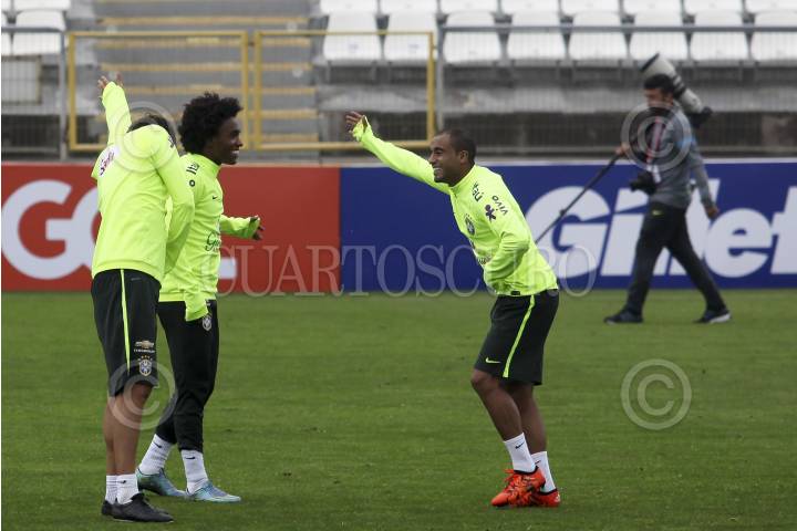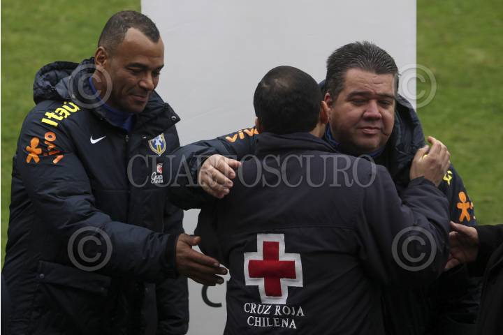 SANTIAGO, CHILE., 06OCTUBRE2015.- La selección brasileña se preparó en el estadio San Carlos de Apoquindo previo a su encuentro de clasificación para Rusia 2018, que sostendrá contra la selección nacional de Chile el próximo jueves. El cuerpo técnico y jugadores sostuvieron un encuentro con la Cruz Roja chilena y con los damnificados del pasado terremoto y tsunami que dañó la Región de Coquimbo. La verdeamarela y sus estrellas ofrecieron sus camisetas en apoyo a la población afectada. FOTO: FÉLIX MÁRQUEZ /CUARTOSCURO.COM