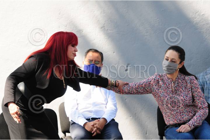 Layda Sansores y Claudia Sheinbaum se saludan.