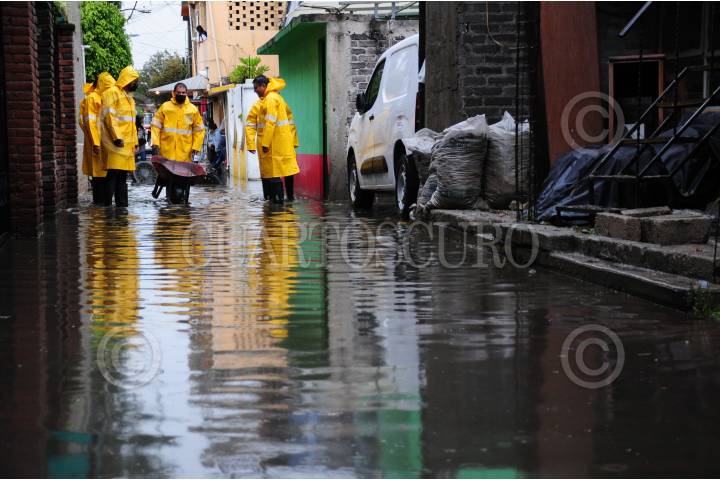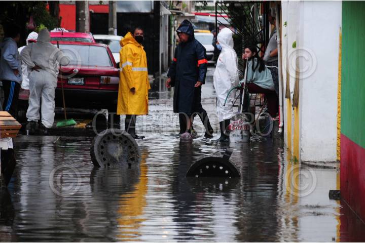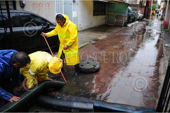 Elementos de Protección Civil destapan las coladeras de la unidad El Molino.