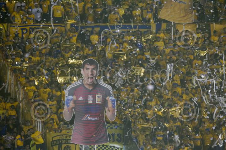 MONTERREY, NUEVO LEÓN, 01MAYO2019.- Jugadores de los equipos de Rayados del Monterrey y los Tigres de la UANL, en una jugada de tiro de esquina, en el estadio BBVA Bancomer, en la vuelta de la Final de la Concacaf, Liga de Campeones 2019. Marcador al medio tiempo: Monterrey: 1 - Tigres: 0 FOTO: GABRIELA PÉREZ MONTIEL /CUARTOSCURO.COM