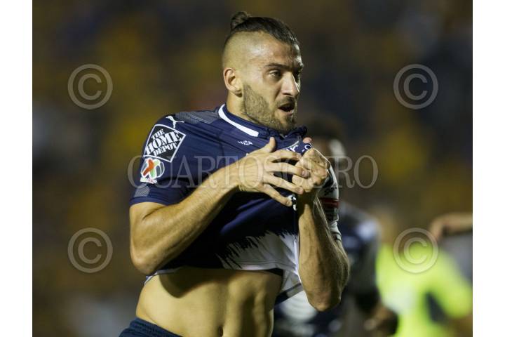 MONTERREY, NUEVO LEÓN, 23ABRIL2019.- Nicolás Sánchez del del equipo de los Rayados del Monterrey, celebra el gol, ante el equipo de los Tigres de la UANL, en el estadio Universitario, partido correspondiente a la Final de ida de la Concacaf, Liga de Campeones 2019. Marcador Final: Tigres: 0 - Monterrey: 1 FOTO: GABRIELA PÉREZ MONTIEL /CUARTOSCURO.COM