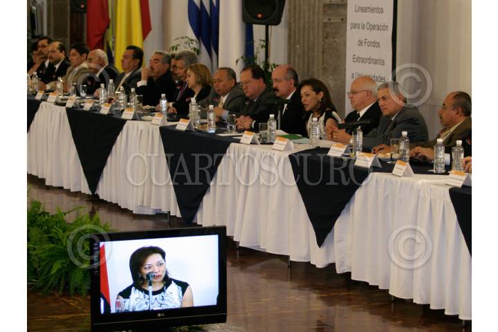MÉXICO, D.F., 26FEBRERO2008.- Rafael López Secretario General de ANUIES, Josefina Vazquez Mota, Secretaria de Educación Publica y Rodolfo Tuiran Sub Secretario de Educación Superior durante la presentación de lineamientos para operación de fondos extraordinarios a universidades. FOTO: SAÚL LÓPEZ/CUARTOSCURO.COM