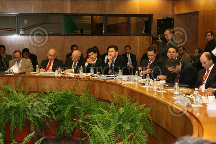 MÉXICO, D.F., 05OCTUBRE2011.- Alonso Lujambio, secretario de Educación Pública acompañado de Francisco Ciscomani, titular de la Unidad de Planeación; Rodolfo Tuirán, subsecretario de Educación Superior; Facundo Rosas, comisionado de la Policía Federal; Monte Alejandro Rubido, subsecretario de Prevención y Participación Ciudadana y José Fernando González, subsecretario de Educación Básica y yerno de la maestra Elba Esther Gordillo, durante una reunión de trabajo con los titulares de educación de las diversas entidades del país en el salón Hispanoamericano de la Secretaria de Educación Pública. FOTO: RODOLFO ANGULO/CUARTOSCURO.COM