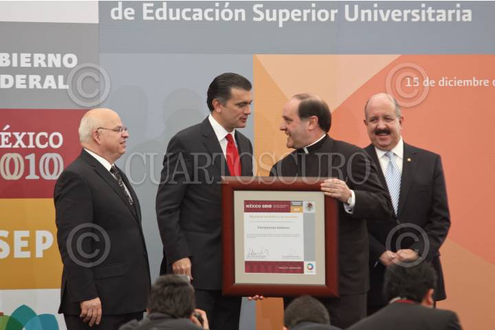 MÉXICO, D.F., 15DICIEMBRE2010.- Alonso Lujambio, secretario de Educación Pública, acompañado de Rodolfo Tuirán, subsecretario de Educación Superior y de Rafael López, secretario de de la Asociación Nacional de Universidades e Instituciones de Educación Superior durante la entrega de reconocimientos a Instituciones de Educación Universitaria por la buena calidad en sus programas que se realizo en el patio central de la SEP. FOTO: RODOLFO ANGULO/CUARTOSCURO.COM