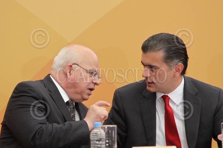 MÉXICO, D.F., 14DICIEMBRE2011.- Rodolfo Tuirán, subsecretario de Educación Media, y Alonso Lujabio Irazabal, encabezaron la Vigésima Séptima Reunión Nacional Plenaria Ordinaria del Consejo Nacional de Autoridades Educativas en la sede de la SEP. FOTO: MOISÉS PABLO/CUARTOSCURO.COM