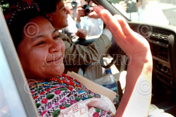 Rigoberta Menchú Tum, premio nobel de la paz y el Frente Civico por la Democracia ¨Guatemala Somos Todos¨, ofrecieron una conferencia de prensa en las instalaciones del centro de derechos humanos Agustín Pro Juárez. FOTO: Moisés Pablo/CUARTOSCURO.COM