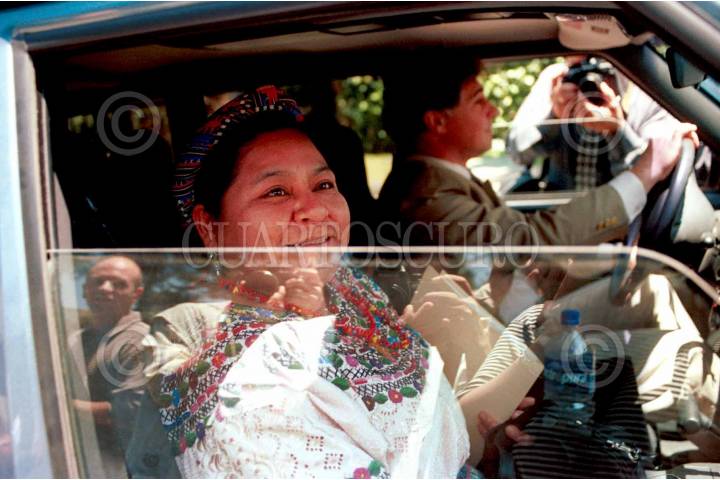 La premio nobel de la Paz, Rigoberta Menchu Tum visito este medio día al presidente Vicente Fox y sostuvieron un encuentro privado. FOTO: Victoria Valtierra/CUARTOSCURO.COM