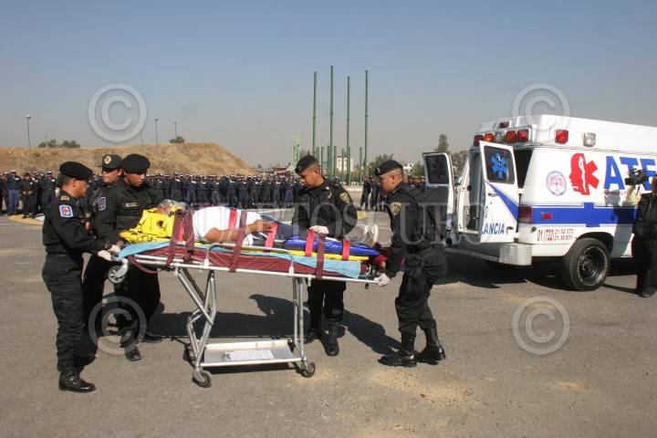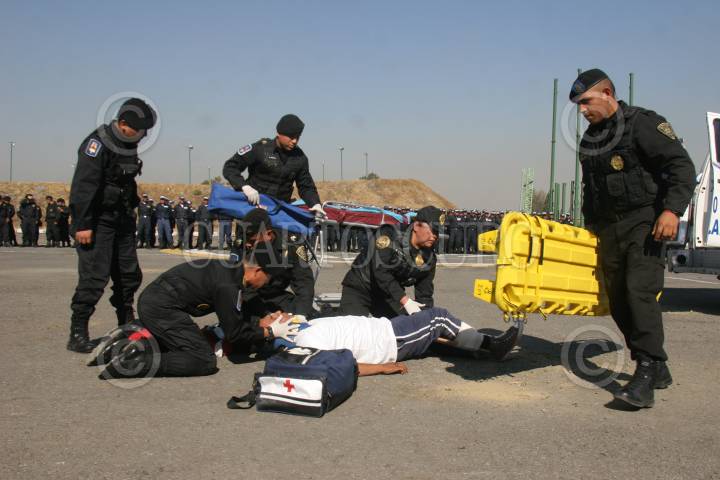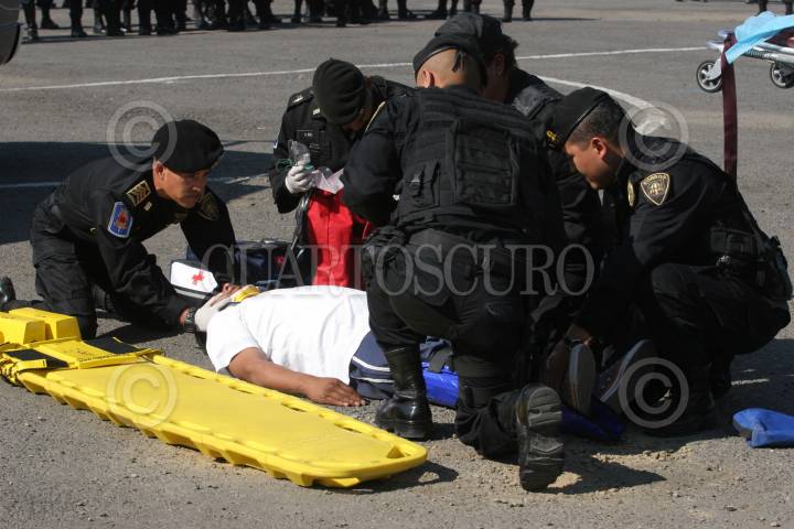 MÉXICO, D.F., 23NOVIEMBRE2010.- Elementos del Escuadrón Fuerza de Tarea de la Secretaria de Seguridad Pública del Distrito Federal, realizaron en la base "Piraña" den Tlahuac, la graduación del personal de Técnicos en Urgencias Medicas, al final del evento, los graduados realizaron una demostración de los conocimientos que adquirieron. FOTO: SAÚL LÓPEZ/CUARTOSCURO.COM