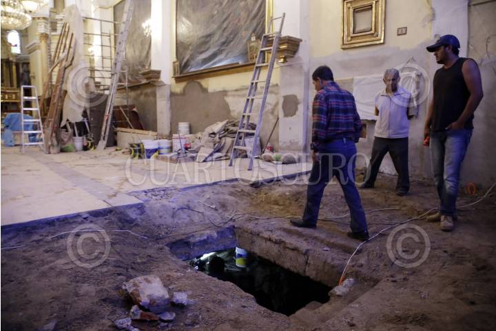 PUEBLA, PUEBLA, 15JUNIO2018.- José Víctor Morales Ortega, párroco de la capilla de Dolores reportó ante INAH, el hallazgo de un túnel con restos óseos mientras se llevaban a cabo obras de rehabilitación tras daños ocasionados por el sismo del pasado 19 de septiembre. FOTO: HILDA RÍOS /CUARTOSCURO.COM