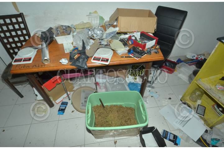 CIUDAD DE MÉXICO, 22OCTUBRE2019.- Elementos de la Secretaría de Seguridad Ciudadana, de la Policía de Investigación así como equipos especial, en conjunto con elementos de la Marina realizaron un operativo contra el narcomenudeo en el predio Peralvillo 33, en la alcaldía de Cuauhtémoc. El lugar fue identificado como uno de los máximos centros de operaciones de la Unión Tepito, a su vez fueron incautados alrededor de dos toneladas de mariguana, armas, material para la elaboración de droga sintética, así como la detención de 31 personas, 26 hombres y 5 mujeres. Durante la revisión se catearon al menos cuatro departamentos en donde había un laboratorio para la elaboración de droga sintética, los cuales estaban interconectados con túneles. FOTO: ARMANDO MONROY /CUARTOSCURO.COM