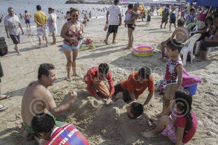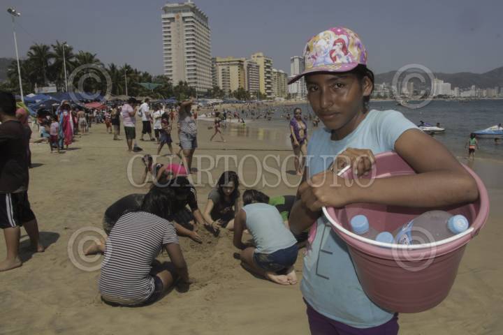 ACAPULCO, GUERRERO, 01ABRIL2015.- Siguen llegando turistas al puerto de Acapulco en esta semana santa, donde en la playa miran con asombro a los niños quienes venden aguas donas entre otras cosas. FOTO: BERNANDINO HERNÁNDEZ /CUARTOSCURO.COM