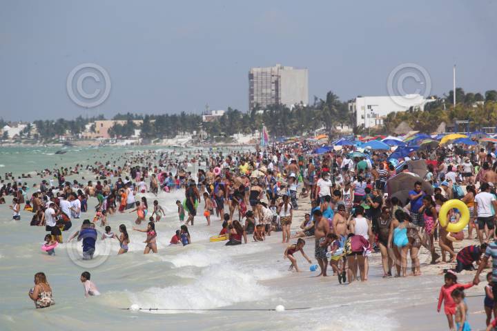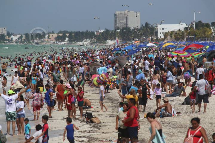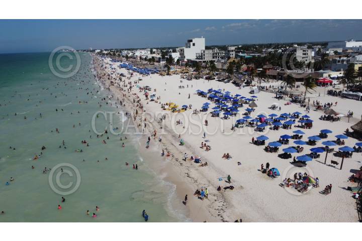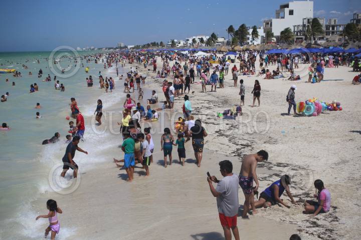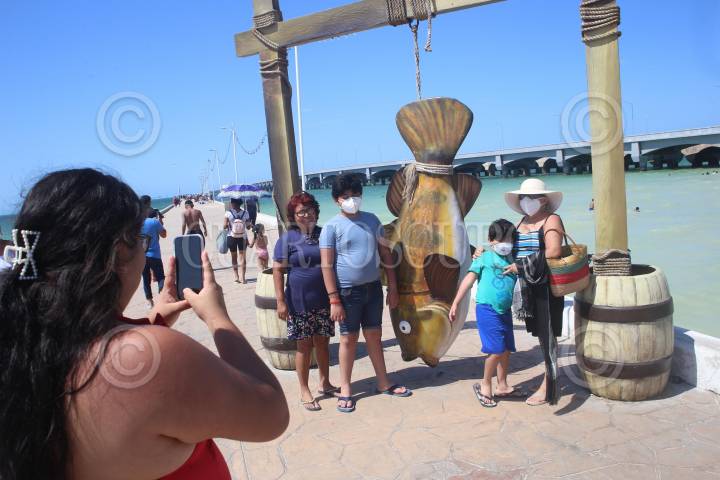 Miles de turistas visitan el puerto de Progreso en Yucatán durante el sábado de Gloria.