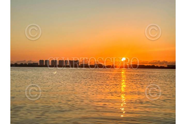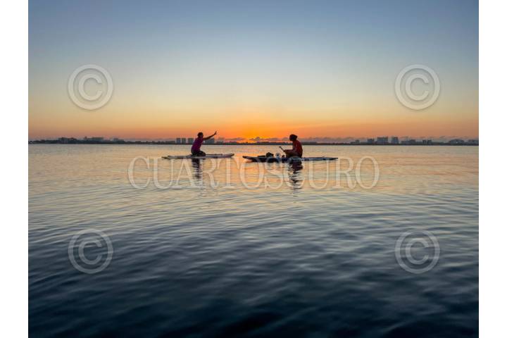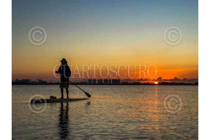 CANCÚN, QUINTANA ROO, 04ENERO2024.- Amanecer colorido desde la Laguna Nichupté, en donde los turistas hacen paseos en kayak. FOTO: ELIZABETH RUIZ/CUARTOSCURO.COM
