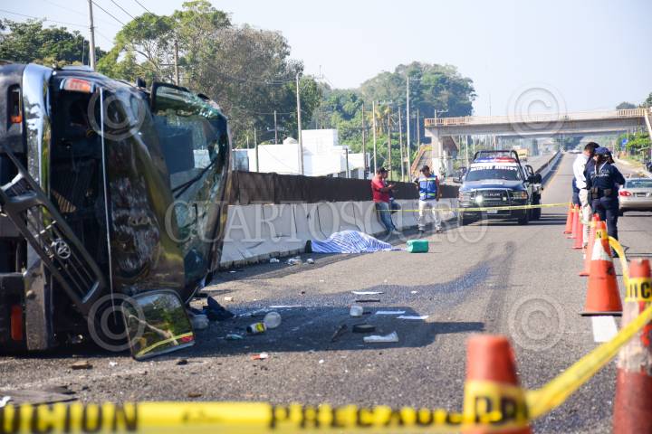 Una persona falleció y una persona resultó herida después de una volcadura de una camioneta de la marca Toyota cuando hizo corte de circunvalación en el tramo carretero Tuxtla Chico a Tapachula