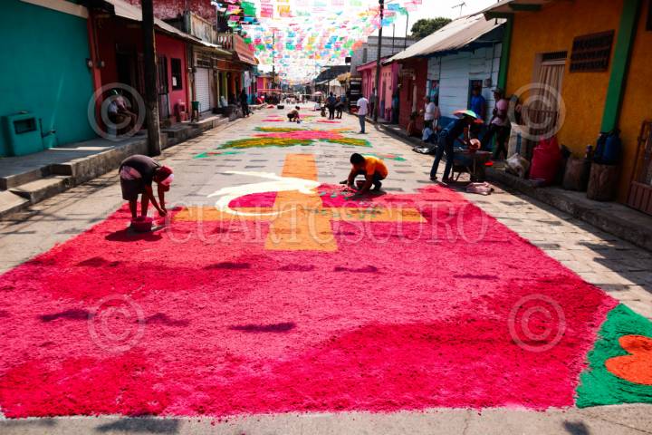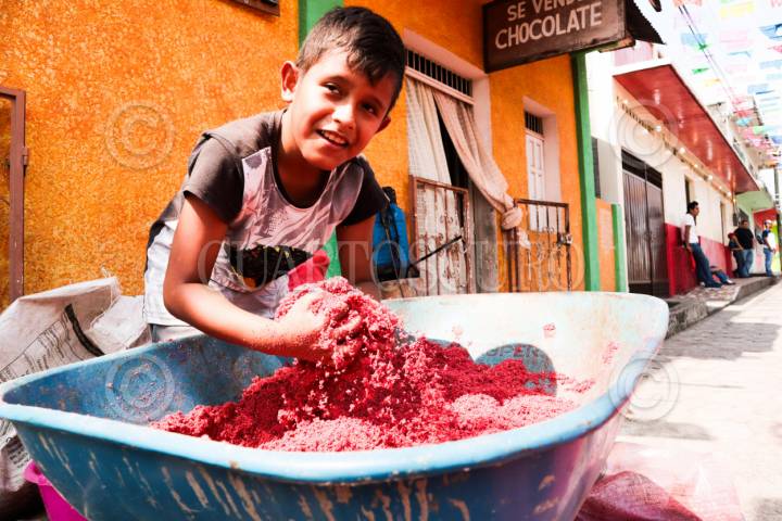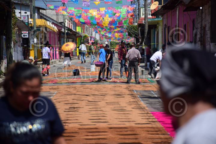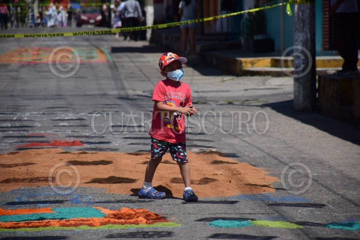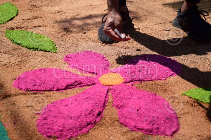 Pobladores elaboraron decenas de tapetes con aserrín de colores para festejar a la Virgen de la Concepción.