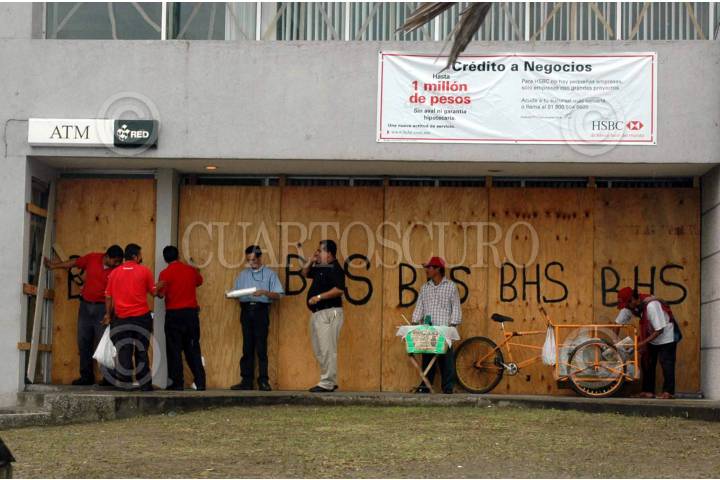 VERACRUZ,VERACRUZ.-04OCTUBRE2005.- Intensas lluvias se registraron en el puerto de Veracruz, despuñes de que el huracán "Stan" tocó tierra al sur del estado entre los puntos de Roca Partida y Montepío en la zona de los Tuxtlas. Negocios y casas se protegen colocando tablas de madera para evitar rompimientos de vidrios. FOTO: Isaac Aguilar/CUARTOSCURO.COM