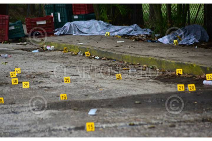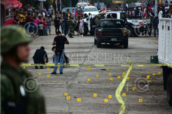 XALAPA, VERACRUZ, 16MAYO2019.- Esta tarde se registro un ataque armado en la localidad de Tuzamapan el municipio de Coatepec donde hombres armados que se trasladaban presuntamente a bordo de dos camionetas: una Liberty azul, y una Tacoma color arena abrieron fuego en contra de un grupo de personas que se encontraban descargando limones en rejas, para luego huir con rumbo al municipio de Jalcomulco, según reportes oficiales en el área se encontraron 90 casquillos percutidos de calibres 9 y 7.62 milímetros, se habla de al menos 5 personas sin vida y mas de 10 heridos, al lugar arribaron fuerzas del orden quienes mantienen un operativo para dar con los responsables. FOTO: CUARTOSCURO.COM