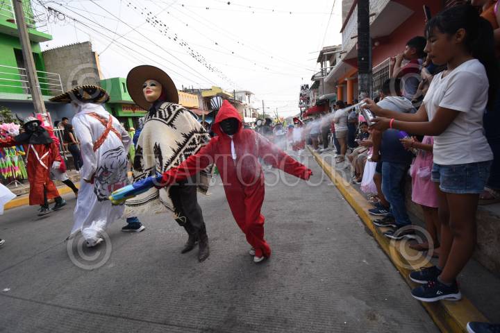 Habitantes de Tuzamapan salieron a las calles disfrazados para festejar su tradicional carnaval, tras dos años de ser suspendido por la pandemia de Covid-19.