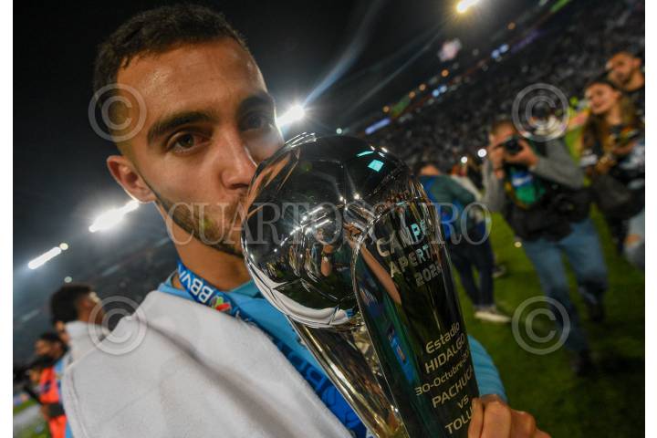 Oscar Murillo defensa de los Tuzos de Pachuca festeja ser Campeones del Torneo Apertura 2022 de la Liga MX.
