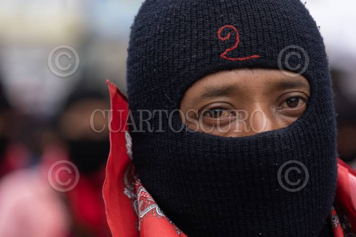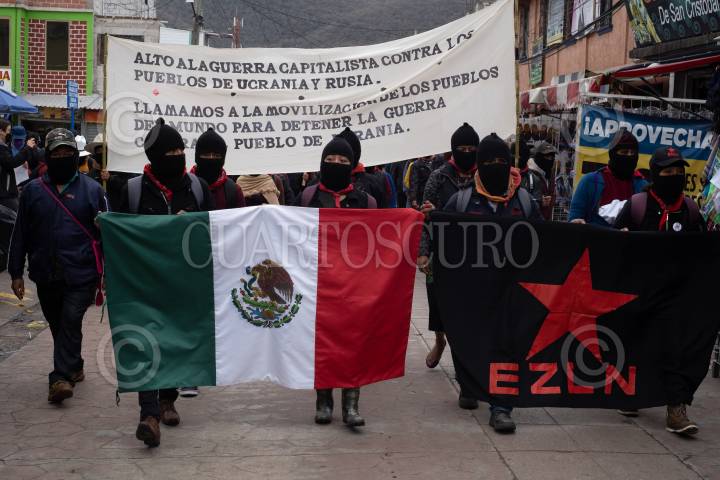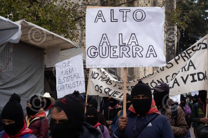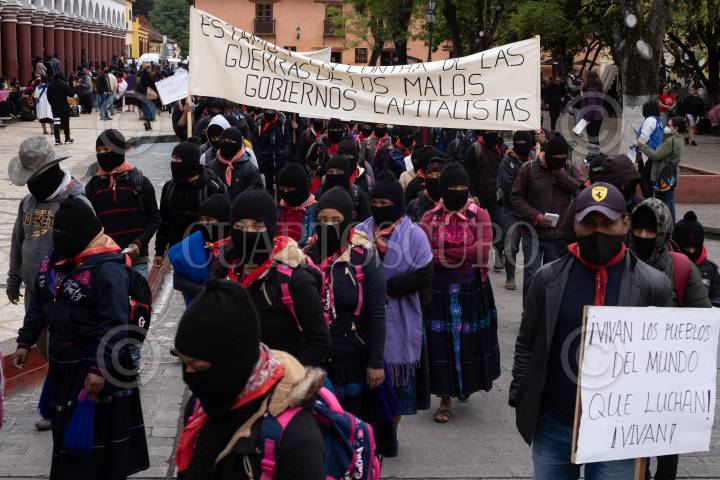 Zapatistas marcharon por las calles de San Cristóbal de las Casas para manifestar su rechazo a los que ellos denominan "guerras capitalistas".