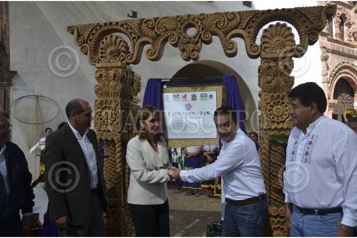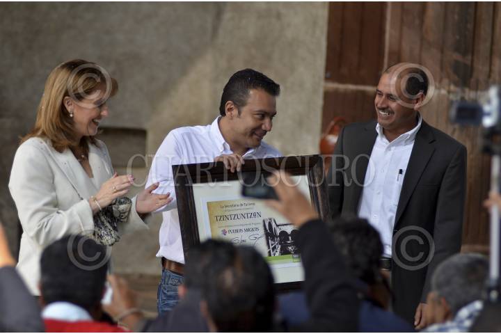 TZINTZUNTZAN, MICHOACAN, 27NOVIEMBRE2012.- La secretaria de Turismo Gloria Guevara Manzo, acudió a la declaratoria de Pueblo Mágico Tzintzuntzan en el ex convento Franciscano en compañía del secretario de turismo de Michoacán Roberto Monroy y el alcalde José Gerardo Villagómez Calderón. Con esta acción Michoacán se convierte en el estado con más pueblos mágicos del país incluyendo a la ciudad de Jiquilpan que también fue declarada este día como el octavo en la entidad. FOTO: ALAN ORTEGA /CUARTOSCURO.COM