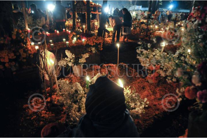 TZURUMUTARO, MICHOACAN, 02NOVIEMBRE2010.- Esta noche de muertos, cientos de personas visitan las tumbas de sus seres queridos en compañía de familiares, pasando ahí toda la noche. El panteón de Tzurumutaro es uno de los más chicos del estado de Michoacán. Se trata de pasar las costumbres que viene de sus antepasados a los mas jóvenes para no perder las tradiciones este Día de Muertos. FOTO: MARIA DI PAOLA BLUM/CUARTOSCURO.COM