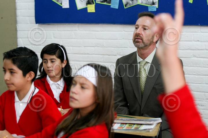 MÉXICO D.F. 13JUNIO2008.- Tony Garza, embajador de los U.S.A., en nuestro país, acompaño a la Secretaría de Educación de los Estados Unidos, durante la visita realizó una visita a la escuela primaria Estados Unidos de Amérca ubicada en la unidad Jonh F. Kennedy, en la colonia Balvuena. FOTO: MOISÉS PABLO/CUARTOSCURO.COM