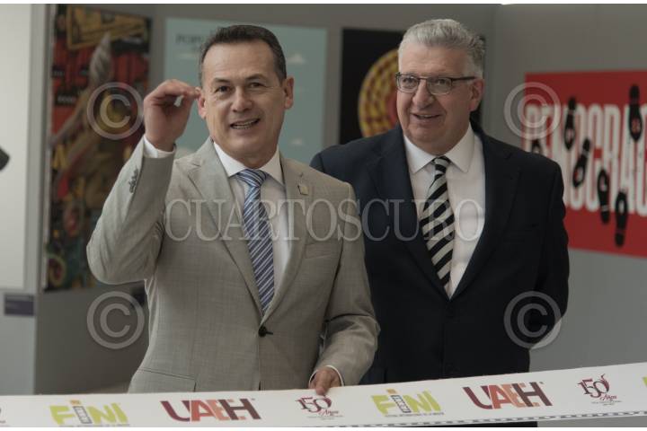 PACHUCA, HIDALGO, 02MAYO2019.- Se llevó a cabo la inauguración de Carteles “Al ritmo de la ilustración” del diseñador argentino Aldrete, y “Seis Décadas de Cartel” del diseñador cubano Antonio Pérez “Niko” en el área de exposiciones del Centro de Vinculación y Desarrollo Educativo de la Universidad Autónoma del Estado de Hidalgo (UAEH), como parte de las exposiciones que comprenden el Festival Internacional de la Imagen (FINI) 2019. En la imagen, Adolfo Pontigo Loyola, rector de la UAEH. FOTO: MARIO JASSO /CUARTOSCURO.COM