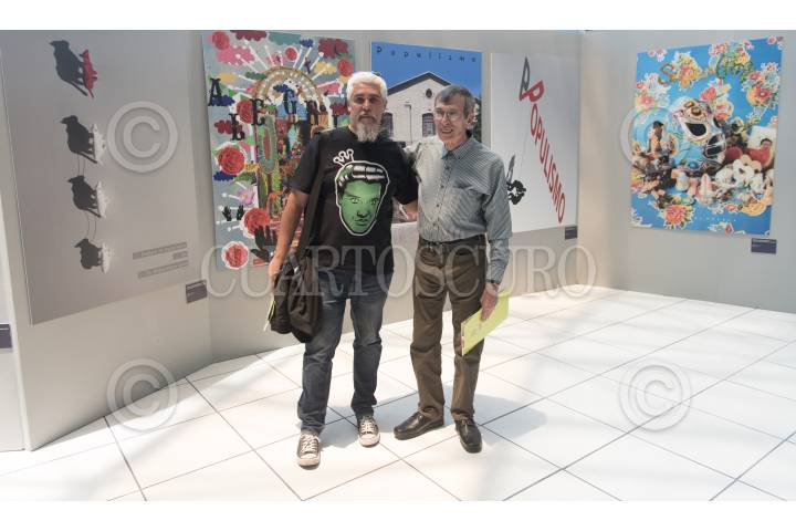 PACHUCA, HIDALGO, 02MAYO2019.- Se llevó a cabo la inauguración de Carteles “Al ritmo de la ilustración” del diseñador argentino Aldrete, y “Seis Décadas de Cartel” del diseñador cubano Antonio Pérez “Niko” en el área de exposiciones del Centro de Vinculación y Desarrollo Educativo de la Universidad Autónoma del Estado de Hidalgo (UAEH), como parte de las exposiciones que comprenden el Festival Internacional de la Imagen (FINI) 2019. En la imagen, los autores de la exposición. FOTO: MARIO JASSO /CUARTOSCURO.COM