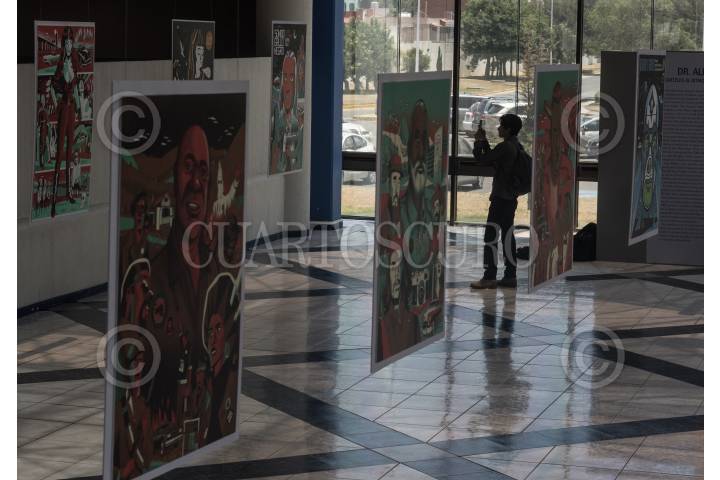 PACHUCA, HIDALGO, 02MAYO2019.- Se llevó a cabo la inauguración de Carteles “Al ritmo de la ilustración” del diseñador argentino Aldrete, y “Seis Décadas de Cartel” del diseñador cubano Antonio Pérez “Niko” en el área de exposiciones del Centro de Vinculación y Desarrollo Educativo de la Universidad Autónoma del Estado de Hidalgo (UAEH), como parte de las exposiciones que comprenden el Festival Internacional de la Imagen (FINI) 2019. FOTO: MARIO JASSO /CUARTOSCURO.COM