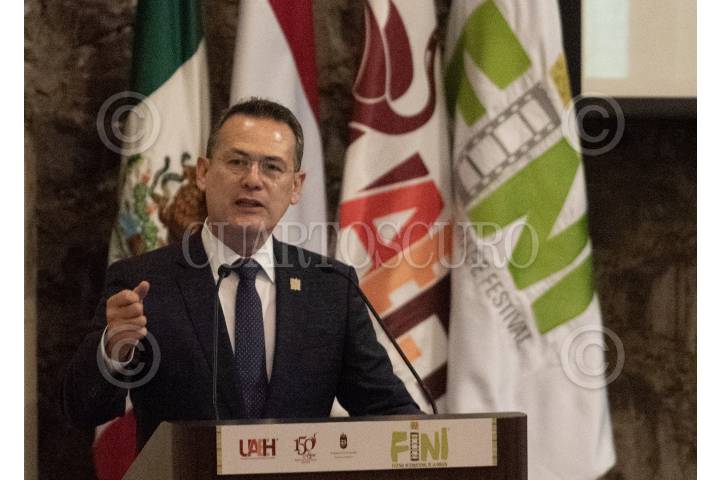 PACHUCA, HIDALGO, 03MAYO2019.- Adolfo Pontigo Loyola, rector de la Universidad Autónoma del Estado de Hidalgo (UAEH), encabezó esta tarde la inauguración oficial del Festival Internacional de la Imagen (FINI) 2019, en el auditorio del Centro Cultural Universitario La Garza. FOTO: MARIO JASSO /CUARTOSCURO.COM