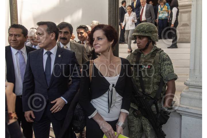 PACHUCA, HIDALGO, 03MAYO2019.- Se inauguró la exposición que comprende a los ganadores del la categoría Fotografía el Festival Internacional de la Imagen (FINI) 2019 en el Centro Cultural Universitario La Garza. En la imagen la diputadas federales María Isabel Alfaro, Marivel Solís Barrera, y Adela Piña Bernal, durante su visita en la exposición. FOTO: MARIO JASSO /CUARTOSCURO.COM